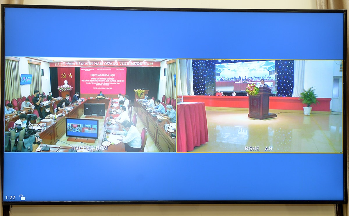 Cùng chủ trì có các đồng chí: Thái Thanh Quý, Ủy viên Trung ương Đảng, Bí thư Tỉnh ủy Nghệ An; Phan Xuân Thủy, Phó Trưởng Ban Tuyên giáo Trung ương; Lê Văn Lợi, Phó Giám đốc Học viện Chính trị quốc gia Hồ Chí Minh.